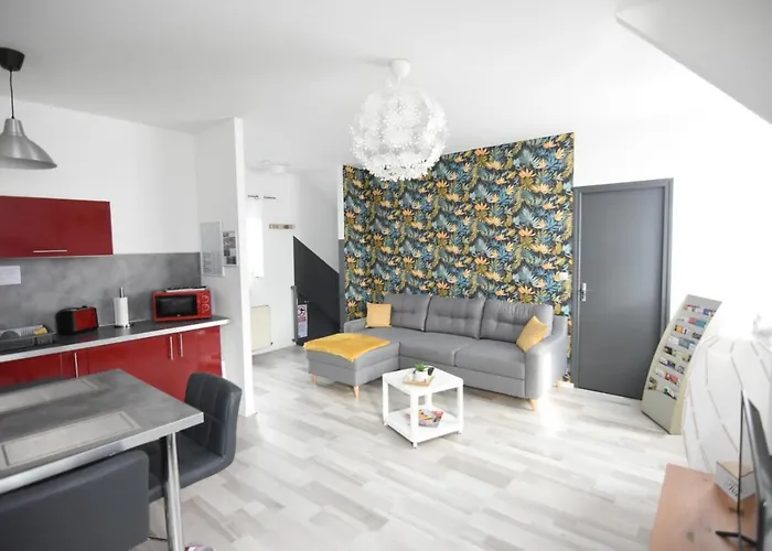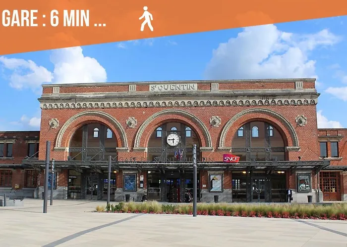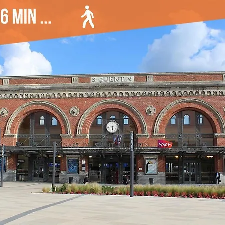 Appartement "Le Terminus " Gare-Cosy-Wifi 6 Personnes 圣康坦设有设施齐全的厨房和配休息区,有线电视和点播电影 和卫星电视的客房. 兰斯机场距离这家位于圣康坦的公寓有100公里.